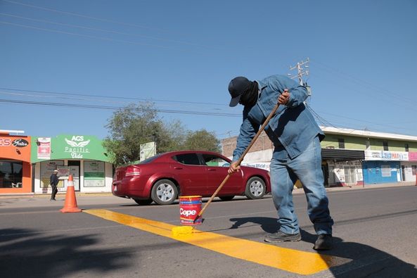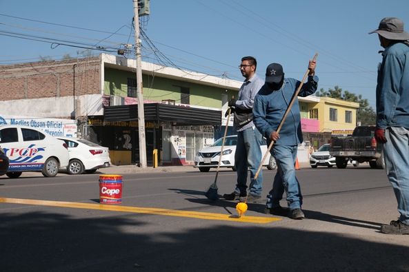 CAJEME.- Para el fortalecimiento de las acciones de educación vial y la prevención de accidentes, la Secretaría de Seguridad Pública Municipal a través del departamento de Tránsito en coordinación con Semaforización y Señalización, colocó líneas delimitadoras de cruce peatonal en calle Jalisco, frente al Colegio de Bachilleres del Estado de Sonora plantel l.