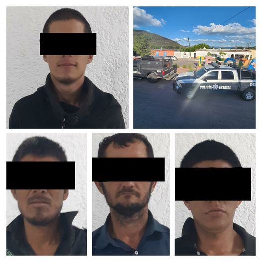 Durante los operativos para dar seguimiento a la denuncia ciudadana, en las inmediaciones de la carretera entre Hornos y Rosario Tesopaco, se logró la detención de Jesús “N”, Francisco “N”, José “N” y Kevin “N” de 34, 36, 19 y 21 años de edad, respectivamente.