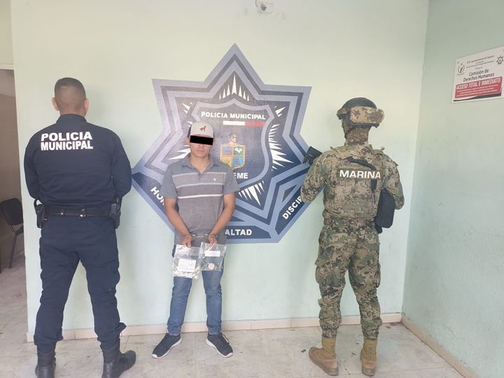 Al ser detectado orinando en la vía pública, una persona del sexo masculino fue interceptado por agentes de la Policía Municipal comisionados al Grupo de Investigación Criminal, quienes al realizarle una inspección física lograron detectarle entre su vestimenta diversos envoltorios de la droga conocida como el cristal, por lo que se le vincula por la presunta comisión del delito contra la salud.