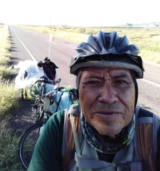 En compañía de su “Caballo Blanco”, una bicicleta equipada para viajar desde Sonora hasta Argentina, Juan Carlos Estrada, un hombre de 60 años de edad, con corazón y mentalidad de un joven de 25, arribó en su viaje al municipio de Jiménez, el fin de semana pasado, hospedándose en el departamento de Protección Civil y Bomberos de Jiménez, para recuperar fuerzas y proseguir su viaje.