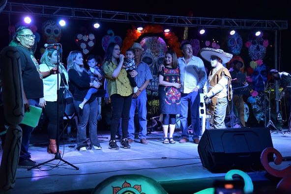 Durante el arranque, se entregó un reconocimiento a la familia Soto por ser la ganadora del concurso de decoración de puertas que se realizó en Cócorit.