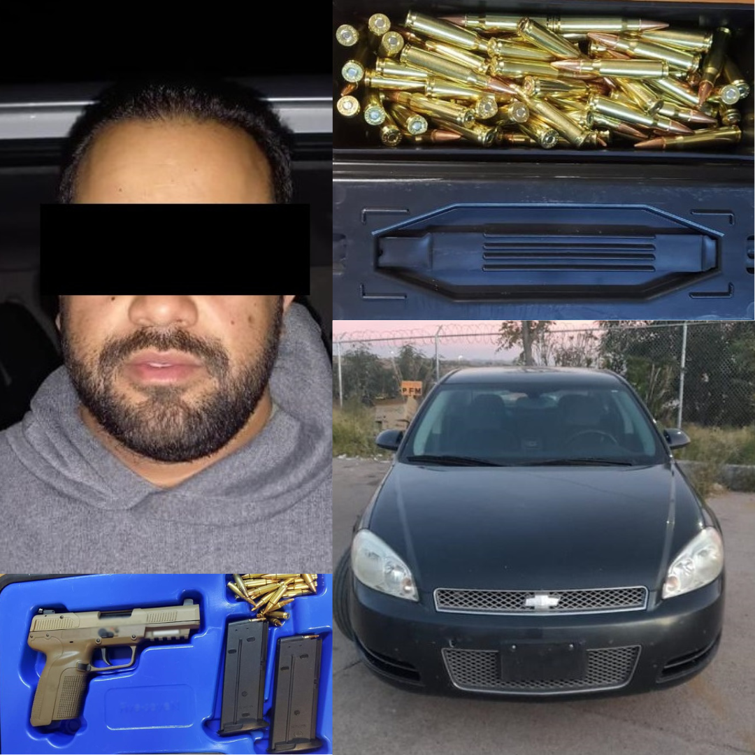 Nogales.- Oficiales de la Policía Estatal de Seguridad Pública (PESP), en colaboración con personal de la Agencia Nacional de Aduanas de México (ANAM) llevaron a cabo la detención de una persona que ingresaba al país en un vehículo donde transportaba armas de fuego y cartuchos.