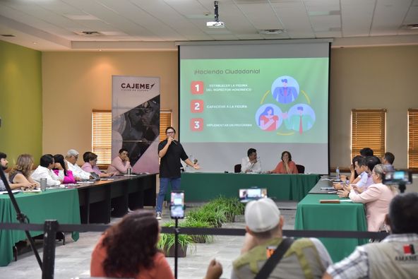 Francisco García Mendívil, joven universitario, expuso que su proyecto consiste en establecer la figura de inspectora o inspector honorífico, brindarles capacitación y poner en marcha un programa que reintegre la identidad social, con el fin de que sea la ciudadanía quien se apropie de la imagen y el mejoramiento de su entorno en forma constante y responsable.