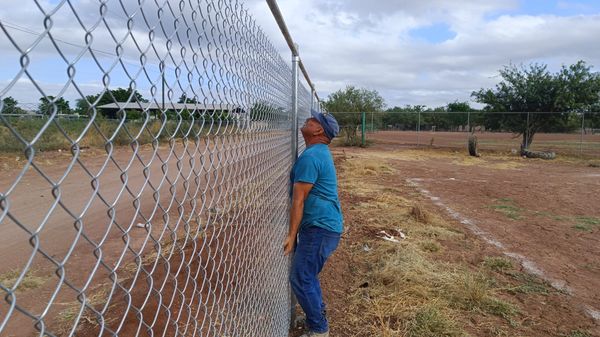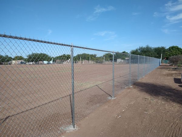 BÁCUM.- Con una inversión de 350 mil pesos que incluye la instalación de malla ciclónica de dos metros de altura y dala de cimentación, se construye el cerco perimetral del estadio de fútbol del Ejido 1° de Mayo, mejor conocido como Campo 77.