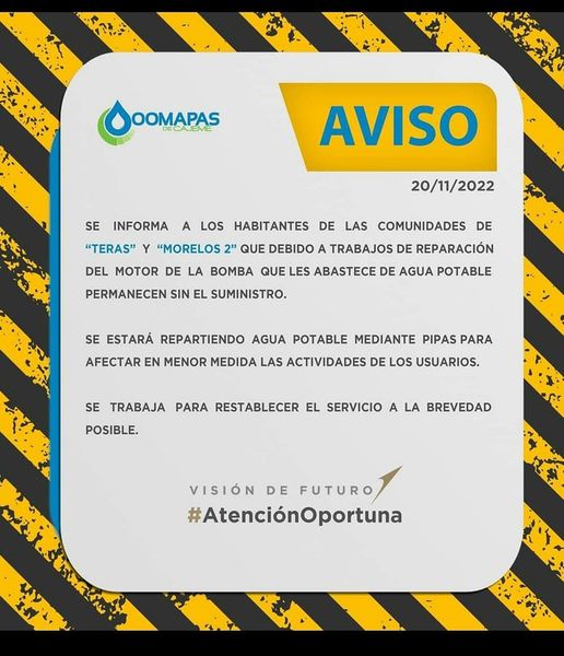 Aviso del Oomapas de Cajeme