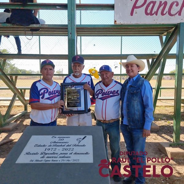 Posterior a este evento el diputado Castelo acudió a la develación de la placa conmemorativa del 50 Aniversario del estadio de béisbol del Tobarito, donde mencionó que es un orgullo colaborar con la comunidad para preservar la historia deportiva.