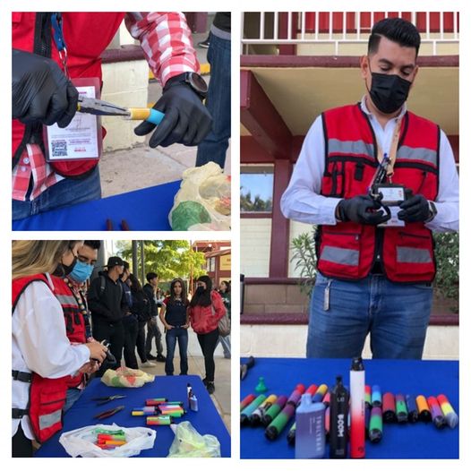 Hermosillo.- Al menos 30 cigarrillos electrónicos o vapeadores asegurados a alumnos del plantel Centro de Bachillerato Tecnológico Industrial y de Servicios (Cbtis) número 206, fueron destruidos por personal de la Comisión Estatal de Protección Contra Riesgos Sanitarios del Estado de Sonora (Coesprisson).