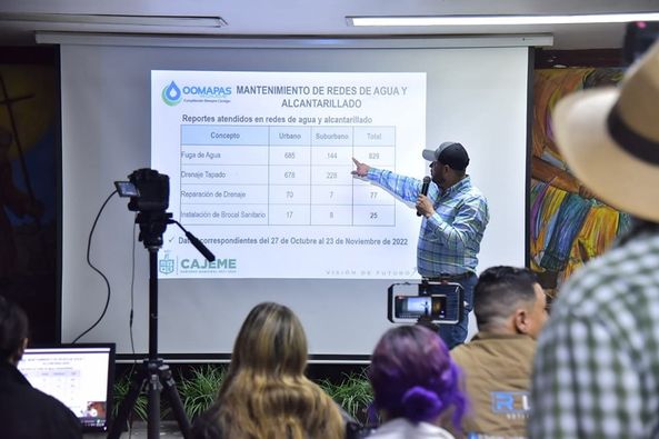 Actualmente se trabaja en la obra del cruce carretero, en la rehabilitación de infraestructura de drenaje sanitario de 8 pulgadas de la calle Belem, la rehabilitación del colector de lluvia de 36 pulgadas al sur de los Misioneros y desazolve de líneas de llegada al cárcamo de bombeo y la ampliación y rehabilitación de infraestructura de drenaje sanitario de 8 y 10 pulgadas en el ejido 31 de octubre, así como avances en la reparación de tuberías de las plantas tratadoras de agua potable y el análisis del proceso de cloración.