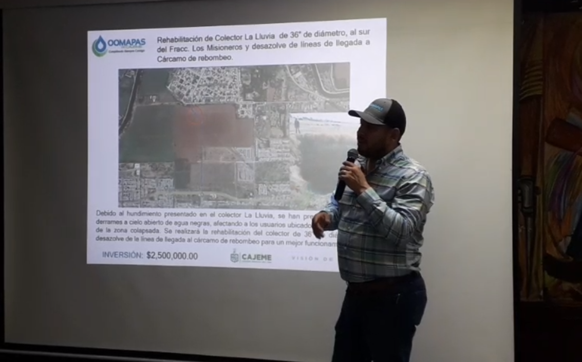 Luis Castro informó que actualmente trabajan en la infraestructura sanitaria y colectores de colonias como Centro, Constitución, Alameda, Miravalle, Campestre, Misioneros, calle Náinari y Tehuantepec, comunidades como Teras y Campo 16, entre otros, así como los avances en la recuperación de las plantas tratadoras