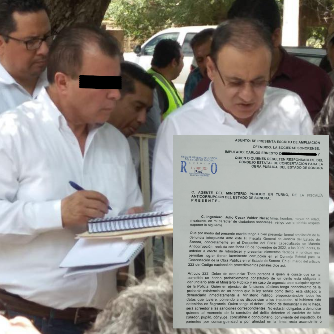 Ante la Fiscalía Anticorrupción de Sonora (FAS) fue presentada el pasado 15 de noviembre una denuncia contra el director del Consejo Estatal de Concertación para la Obra Pública (CECOP), Carlos Ernesto Z., por parte del ciudadano Julio Cesar Valdez Nakashima, quien en su escrito solicita frenar presuntos actos de corrupción en esa dependencia del gobierno del Estado.