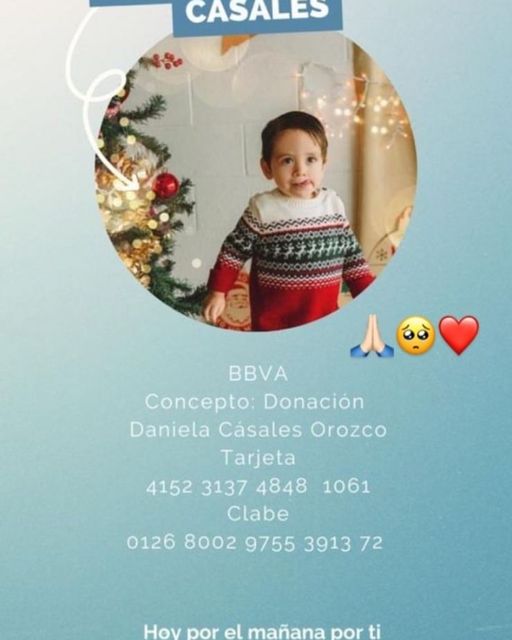 Actualmente se encuentra hospitalizado, este miércoles empieza su tratamiento y un sin fin de estudios que faltan por realizarse, te pido enormemente muchísima oración para su salud y al igual si pudieras cooperar con lo que tú quisieras, para llevar acabo todo lo que falta para lo que apenas comienza, los fondos serán depositados a su mami.