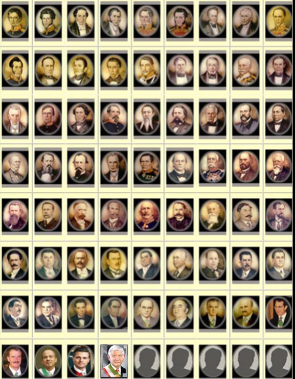 En los primeros 36 años de independencia – de 1822 hasta al inicio del período de Juárez en 1856–, ocuparon la silla presidencial cincuenta diferentes personajes. En 1833 hubo siete presidentes. Curioso, más de la mitad de ese medio centenar llegaron a los 65 – 70, siendo el promedio de vida los 73 años de edad.