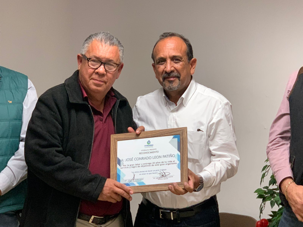 Como agradecimiento por su gran desempeño durante 20 años, este día el Lic. Luis Castro Acosta, Director General del Organismo encabezó la entrega de agradecimientos.