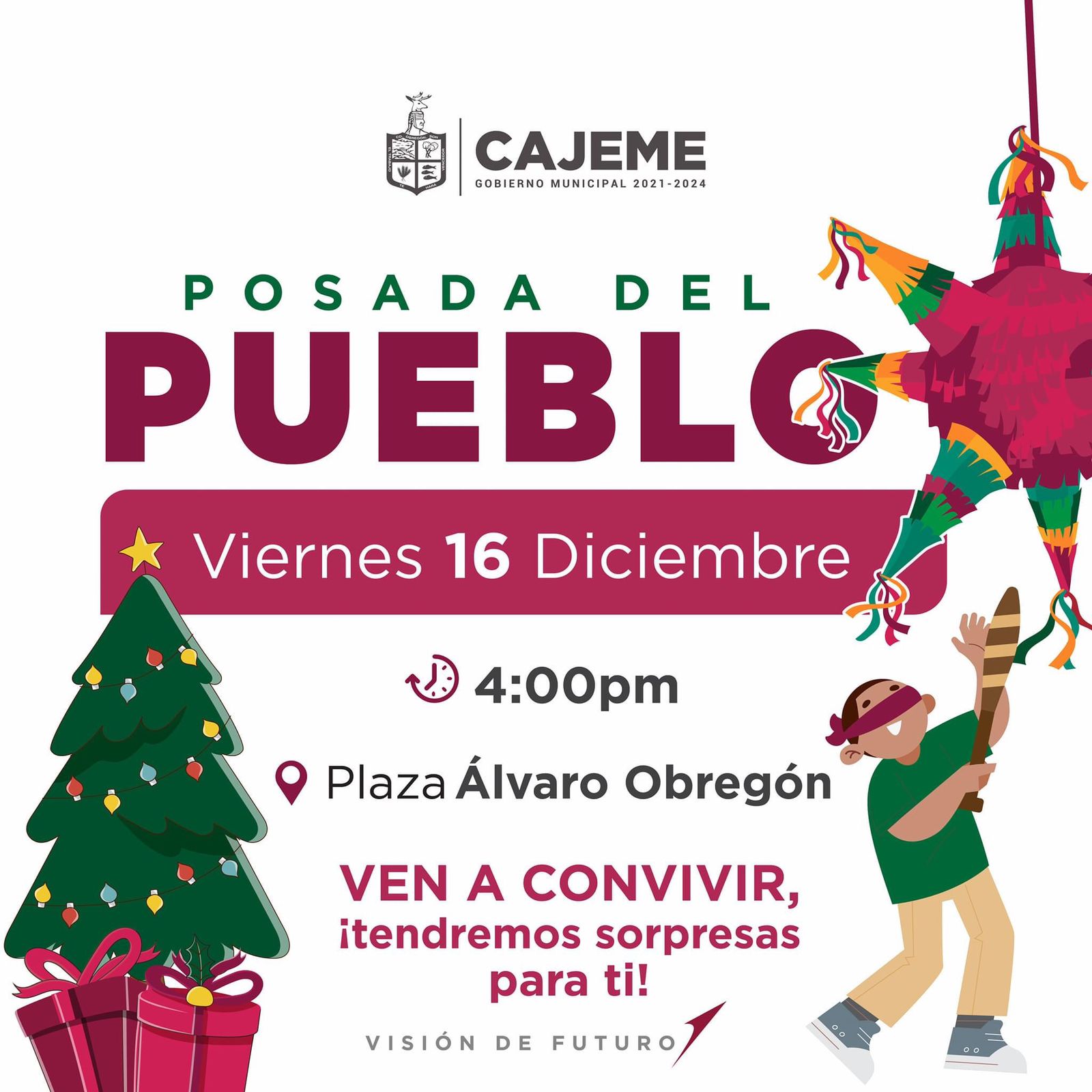 Para fortalecer los lazos de unión, paz y armonía durante estas fechas decembrinas, el Gobierno Municipal invita a las y los ciudadanos a la “Posada del pueblo 2022”, la cual se llevará a cabo este viernes 16 de diciembre en la Plaza Álvaro Obregón.