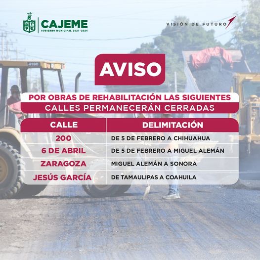 Para evitar accidentes, se informa que se estarán realizando trabajos de #recarpeteo en distintas partes de Ciudad Obregón.