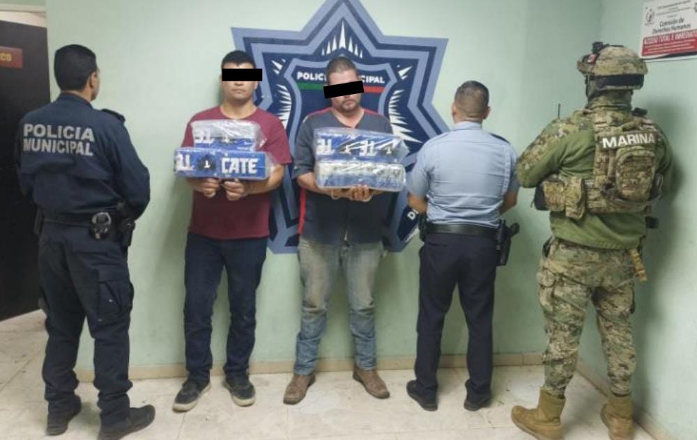 Los detenidos fueron identificados como Raúl “N.”, de 28 años y Julio Adrián “N.”, de 26 años, quienes fueron aprehendidos por la calle California y Tetabiate, minutos después de las 17:00 horas del lunes.