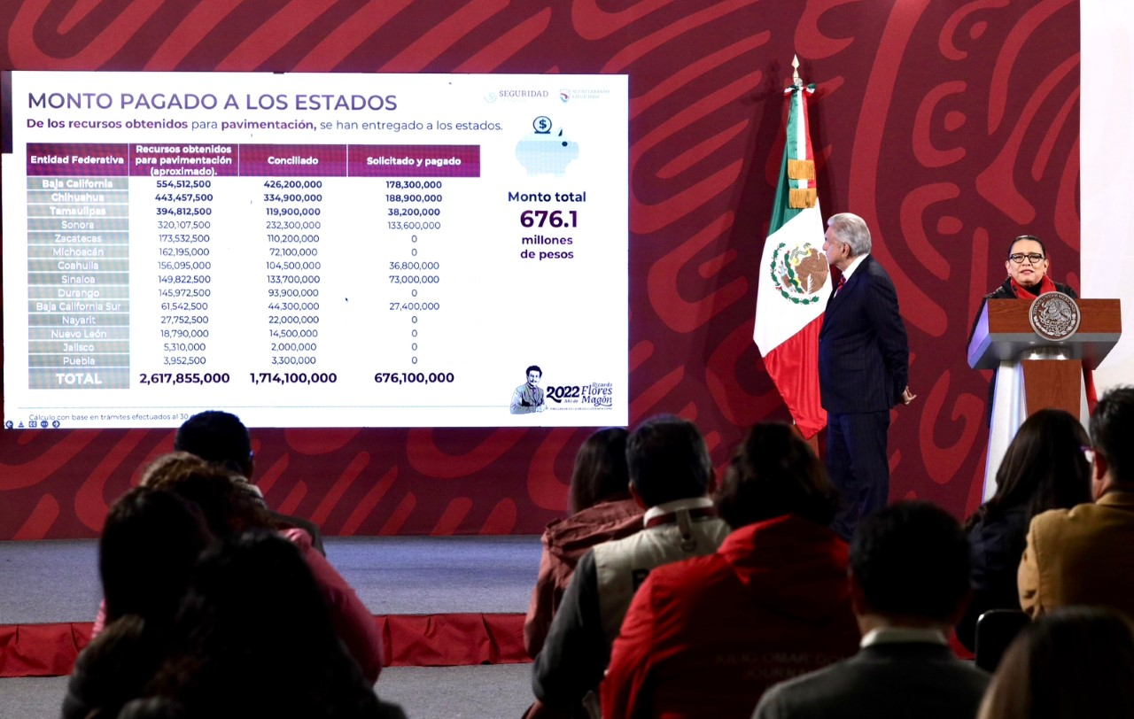 Lo anterior representa una recaudación de 2 mil 617 millones 855 mil pesos, que han sido entregados a los gobiernos locales para el bacheo de calles y avenidas.