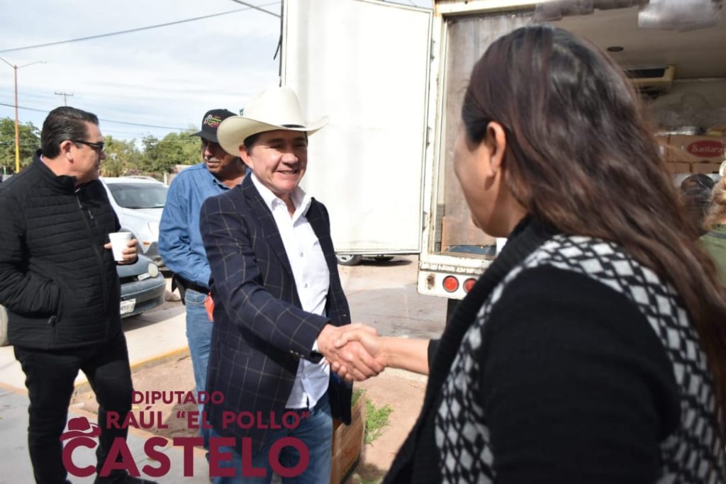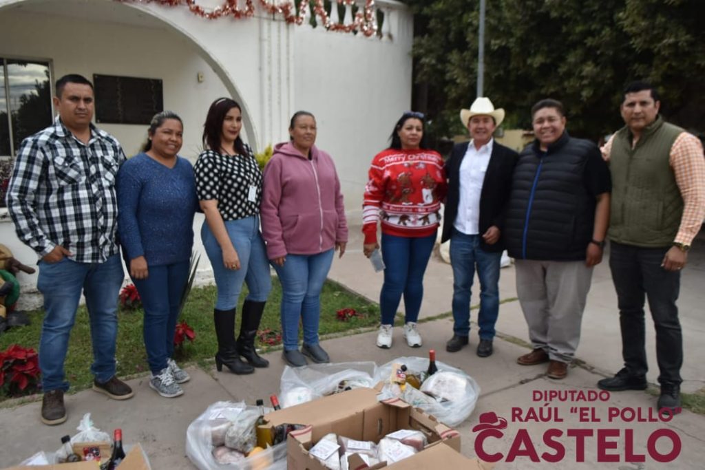 Cajeme, Son.- Como es tradición de cada Navidad y de fin de año, el diputado local, Raúl “El Pollo” Castelo, se reunió con representantes de comunidades, delegaciones, jefes de policía y medios de comunicación para desearles un mejor nuevo año y hacer entrega de cenas navideñas, canastas y paquetes de pierna para preparar la noche de fin de año.