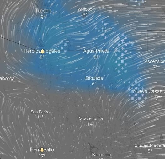Para este martes 3 de enero el frente frío 21 podría generar lluvias, aguanieve y nieve en la zona norte y sierra de Sonora, incluyendo el Puerto San Luis, por lo que se recomienda extremar precauciones.