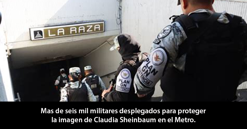 Poco más de seis mil elementos de la guardia nacional fueron desplegados para proteger la imagen de la jefa de gobierno de la Ciudad de México, Claudia Sheinbaum, no para proteger las instalaciones del Metro, bajo el supuesto de que las fallas en el principal medio de transporte de este país son sabotajes.