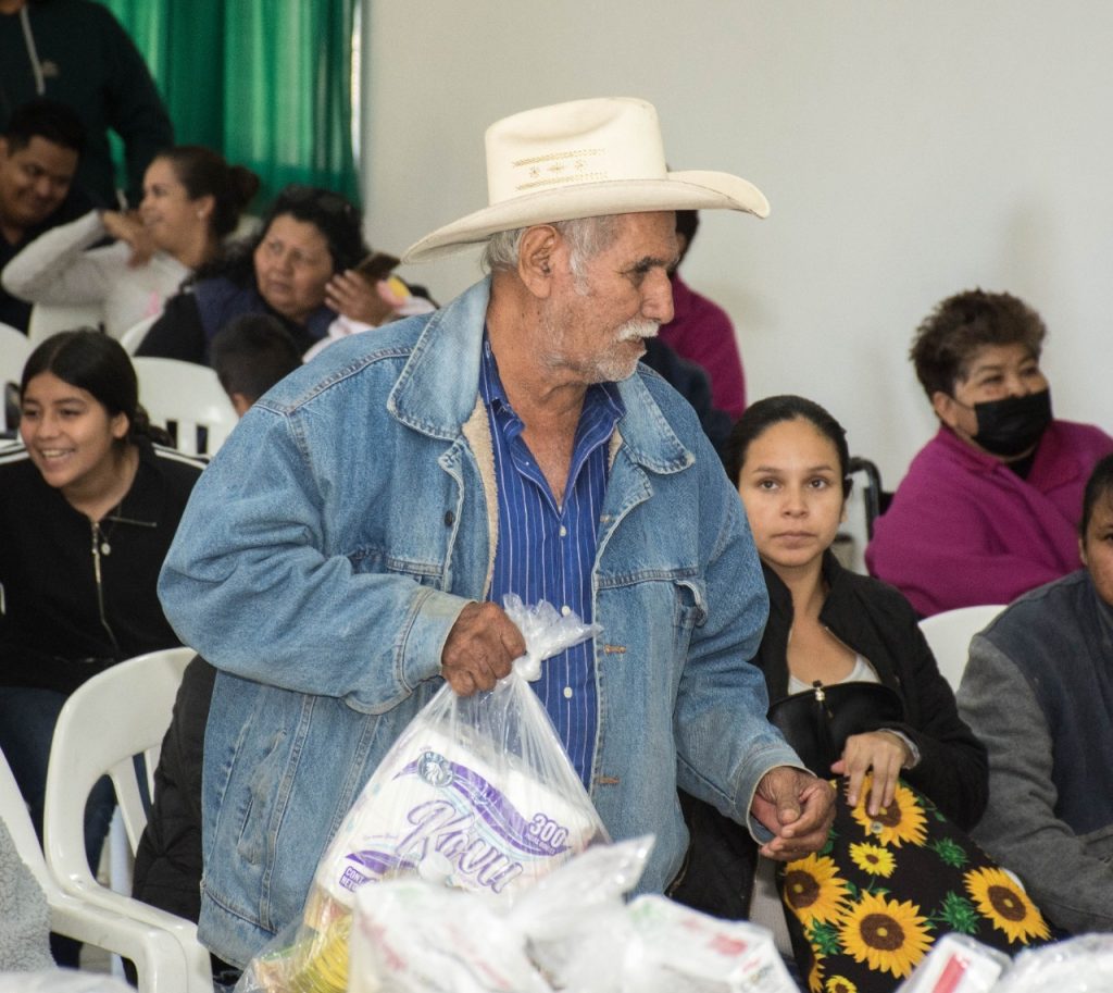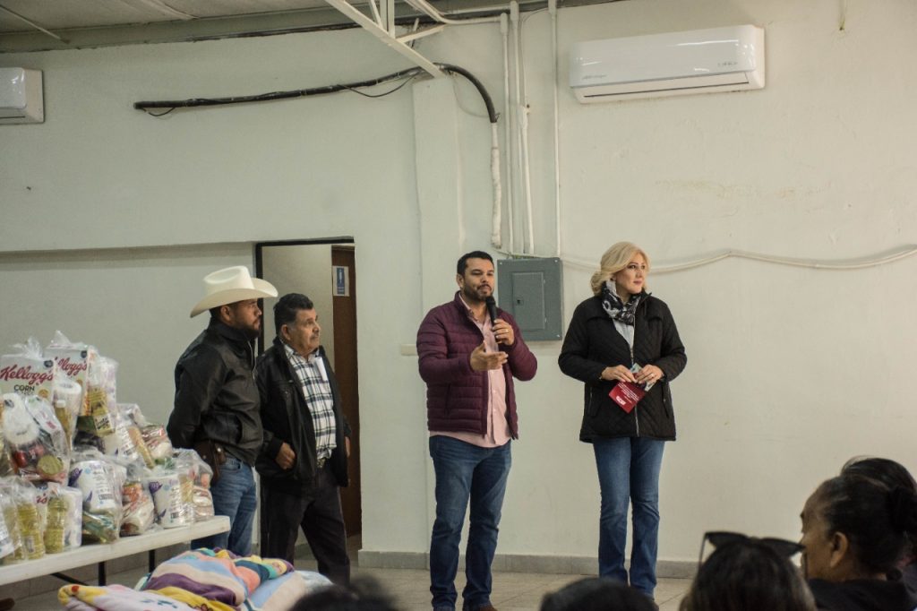 DIF Cajeme en coordinación con OOMAPAS visitaron el Ejido Colectivo “El Rodeo”, para sostener una reunión con el objetivo de fortalecer los lazos de trabajo con las y los vecinos del comité, además de efectuar la entrega de cobijas, despensas y pañales a las personas más vulnerables de la comunidad, apoyos de parte de la Presidenta del Voluntariado de DIF Cajeme, Patricia Patiño, para asistir a las familias ante el frente frío.
