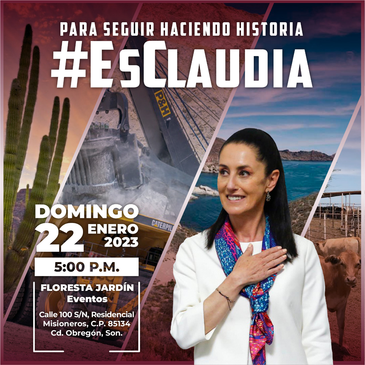 Este domingo 22 de enero a las 5:00 de la tarde, Claudia Sheinbaum Pardo, jefa de Gobierno de la Ciudad de México, impartirá la videoconferencia “Políticas Exitosas de Gobierno”, en Ciudad Obregón, en el Salón Floresta, ubicado en Calle 100 S/N, Residencial Misioneros.