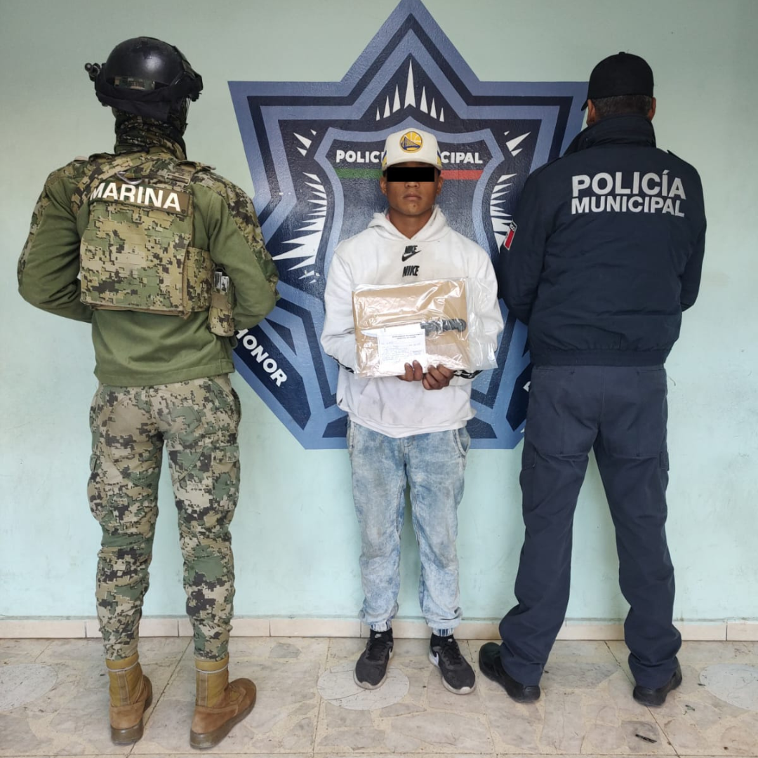 Como resultado de la coordinación que existe entre los tres niveles de gobierno a través de un llamado canalizado por el C5i, mediante un operativo conjunto agentes de la Policía Municipal y Marina, detuvieron a un hombre en la colonia Primero de Mayo, a quien se le vincula por la presunta comisión del delito de portación de arma prohibida.