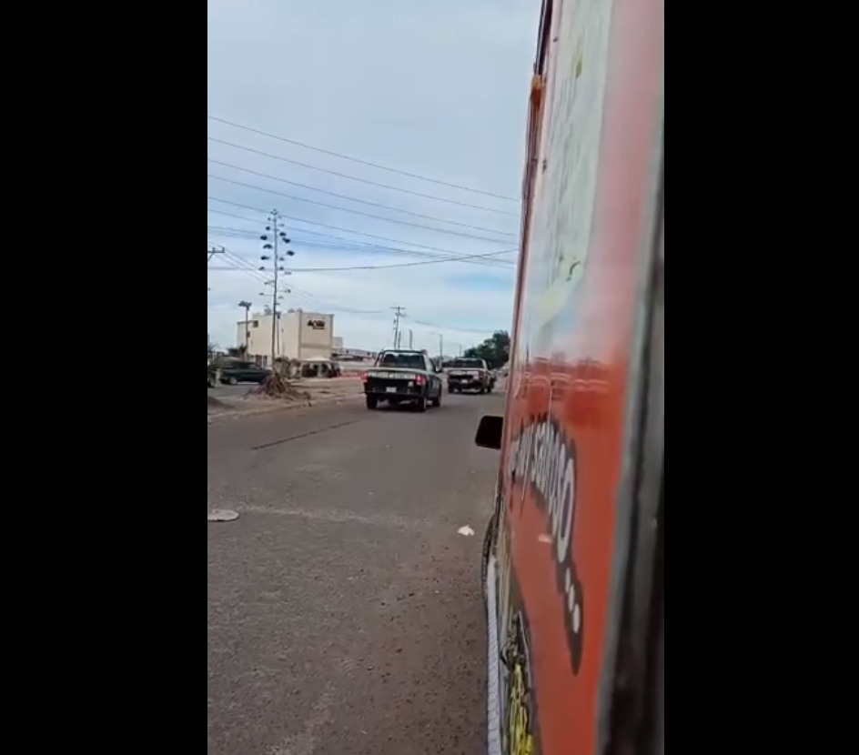 Las imágenes compartidas en redes sociales muestran a un vehículo en fuga y a elementos de la PESP girando al lado contrario de donde fue la balacera