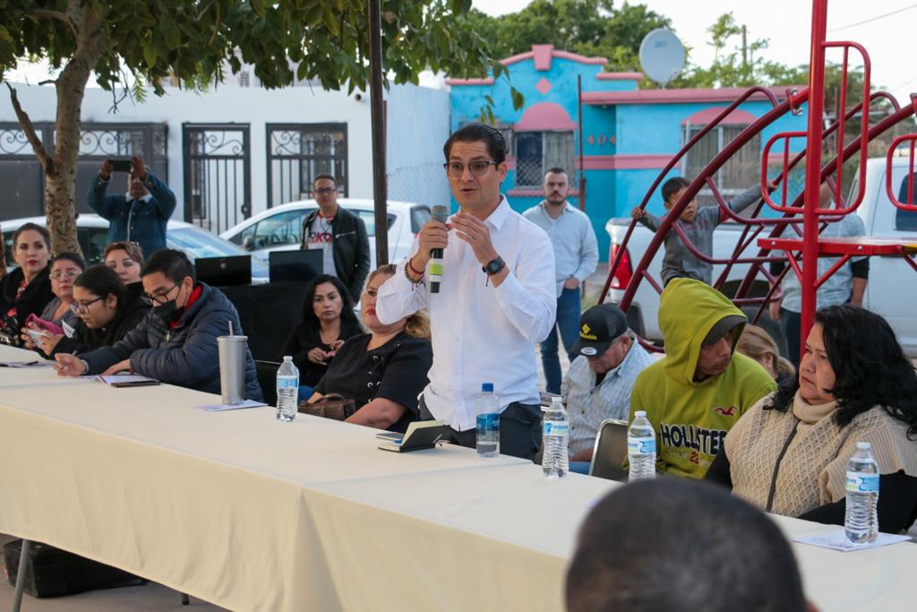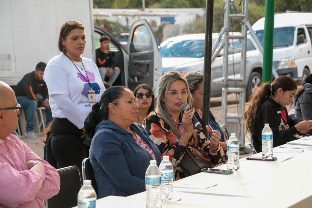 En el marco de la Jornada Permanente por la Paz, este lunes el Alcalde Javier Lamarque Cano en compañía de María Dolores del Río Sánchez, Secretaria de Seguridad Pública del Estado, participó en una mesa de trabajo con la red vecinal de Villa Bonita.