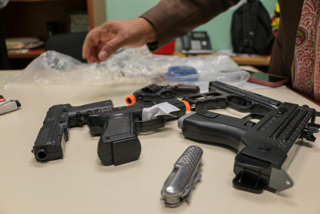 Plumones de aceite, cigarros electrónicos, navajas y pistolas de juguete, fueron algunos de los objetos que se localizaron como parte de las 2 mil 252 mochilas que se revisaron en cinco planteles educativos de nivel secundaria.