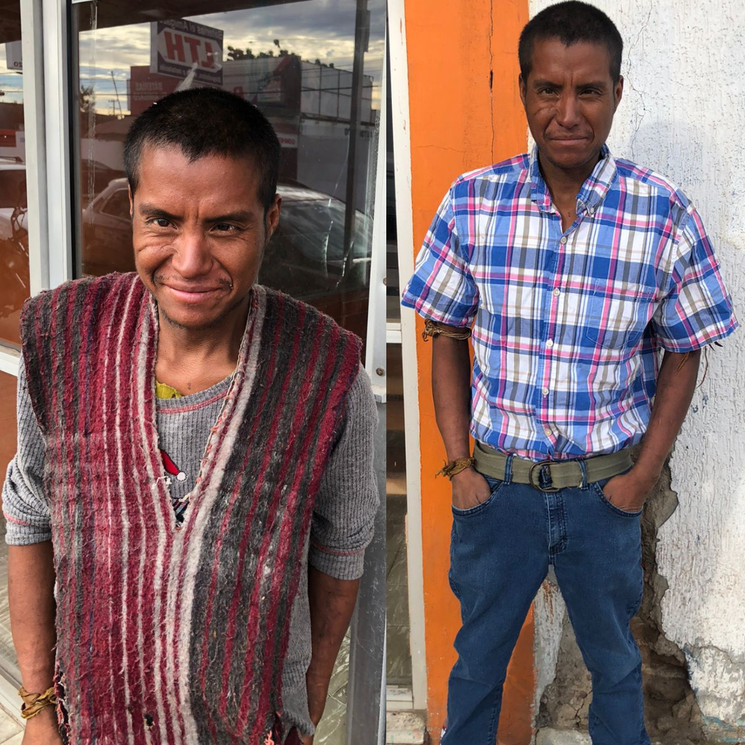 El señor Roberto aceptó la ayuda del programa voluntariamente y se le apoyó con alimentos, higiene personal, ropa y zapatos limpios, orientación psicológica, chequeo médico y finalmente se le proporcionó el traslado al estado de Chihuahua para reunirse con su familia.