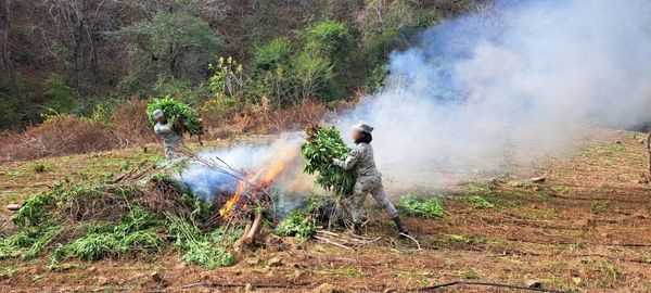 En ambos lugares, ubicados en una zona montañosa, se establecieron operativos de seguridad perimetral, sin encontrar a los responsables de la siembra del probable enervante, y procedieron a la destrucción de las aproximadamente 91 mil plantas, a través del método de mano de obra e incineración.