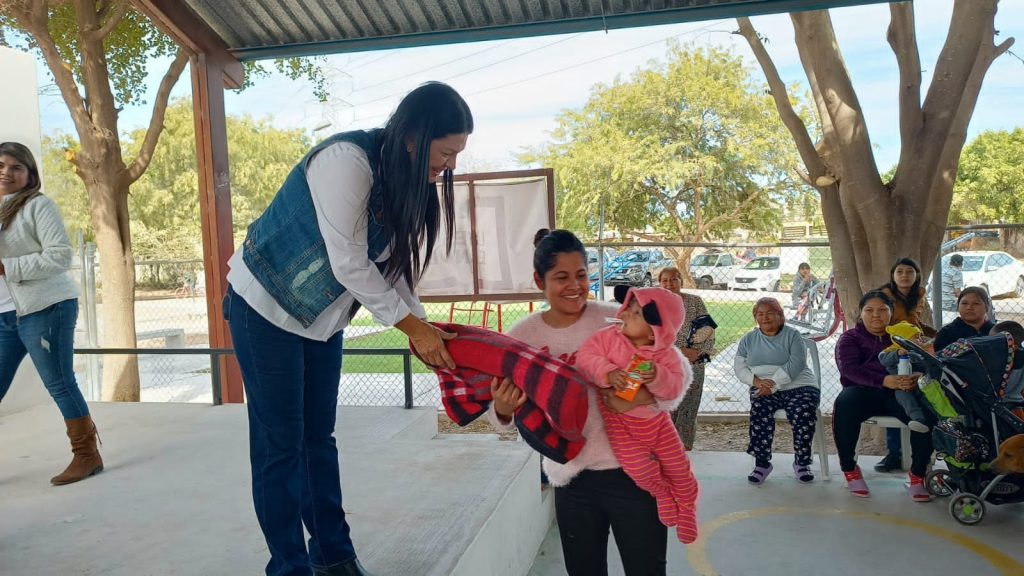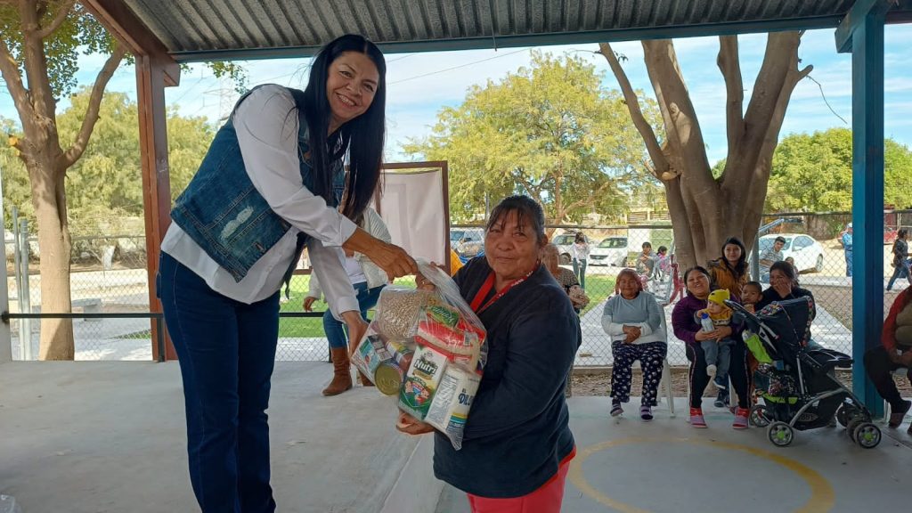 También entregó despensas, cobijas, cosméticos y bonitas bolsas para la mujer mediante una serie de rifas.