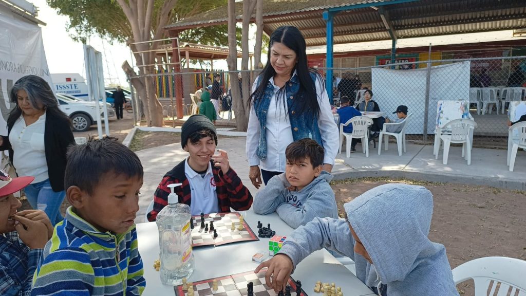También los niños se beneficiaron con la biblioteca móvil, con juego de ajedrez y la oportunidad de dibujar.