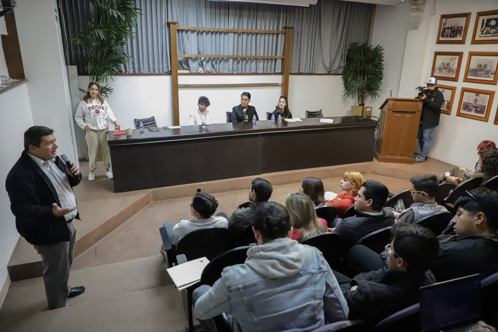 A este encuentro con estudiantes también asistieron las diputadas Natalia Rivera Grijalva, Rosa Elena Trujillo Llanes y Sagrario Montaño Palomares.