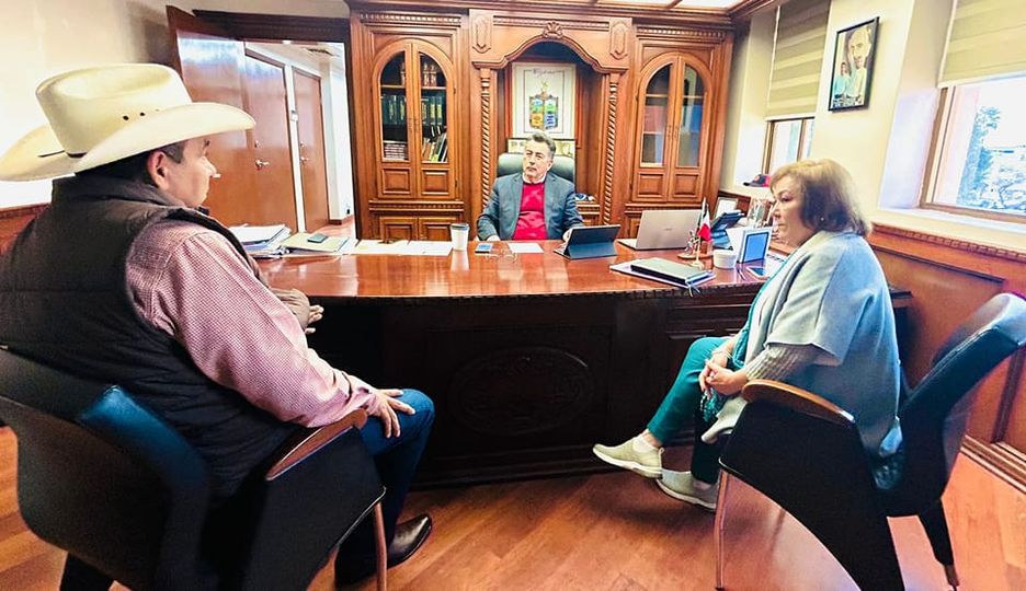 Una nutrida reunión sostuvo Julio Aldama Solís presidente de la Asociación Ganadera Local Del Valle del Yaqui (AGLVY), con Javier Lamarque Cano Alcalde de Cajeme y Lucy Navarro Gallegos Secretaria del Ayuntamiento, al acordar varios proyectos en favor de los ganaderos y rancherías del municipio.