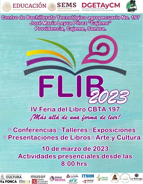 Para fomentar la lectura y literatura en la comunidad, el Gobierno Municipal a través de la Subdirección de Cultura en coordinación con el CBTA 197, se llevará a cabo la Feria del Libro (FLIB) 2023 el próximo viernes 10 de marzo.