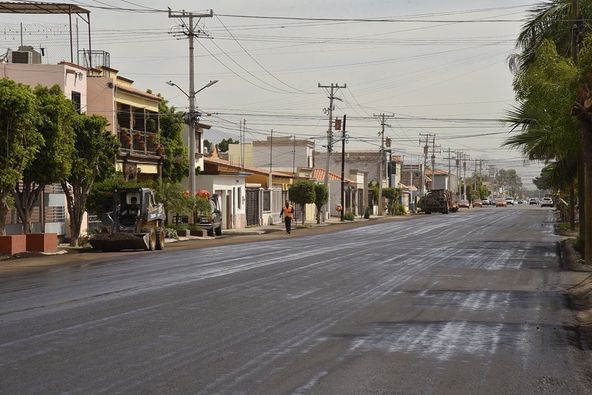 Entre dichas obras en proceso de construcción, se encuentra la pavimentación con carpeta asfáltica que se realiza en la calle Miguel Alemán desde la calle Tetabiate a la calle Cajeme, para dar continuidad a la nueva carpeta ya aplicada entre la calle 200 a Yaqui, trecho que ya cuenta con franjas de señalización horizontal.