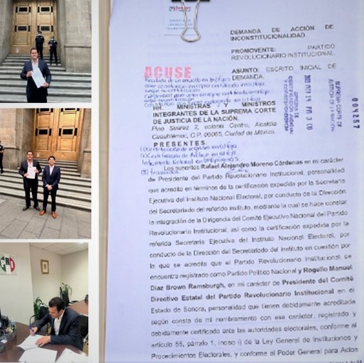Rogelio Díaz Brown fue a México y a nombre del PRI de Sonora, cuya presidencia alcanzó impulsado por su protector, Manlio Fabio Beltrones, pidió a la Suprema Corte de Justicia de la Nación realizar el trámite de Acción de Inconstitucionalidad contra la reforma aprobada por Morena y sus aliados, de reducir a 3 años el próximo mandato estatal para empatar los procesos con los federales en 2030.