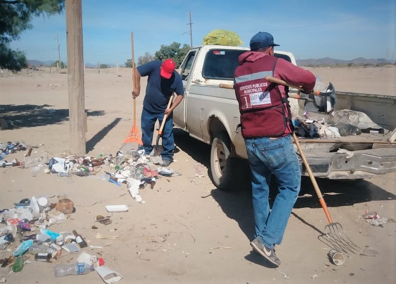 Este martes, trabajadores de Servicios Públicos Municipales en Empalme, limpiaban la playa El Cochórit, donde cada semana santa se llena de gente local y visitantes de Chihuahua.