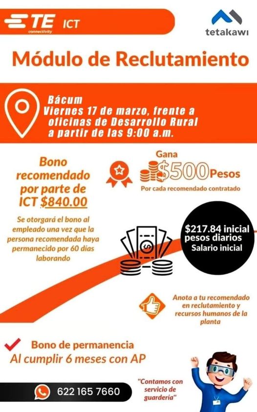 Reúne los requisitos y acude a lado de biblioteca Pública en la Plaza de Bácum.