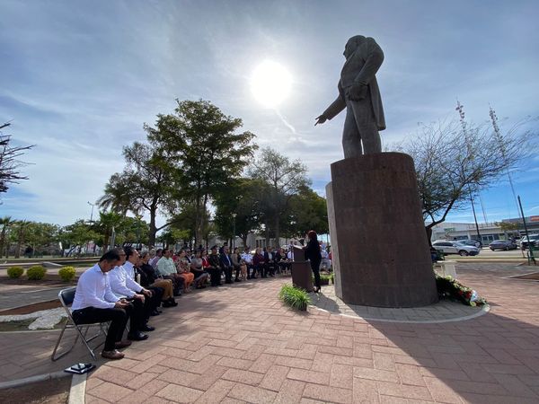 Después de los correspondientes Honores a la Bandera, a cargo de la escolta de Seguridad Pública Municipal, la Jefa de Despacho de Presidencia, Deni Gastélum Barreras, en representación del Alcalde Javier Lamarque Cano, recalcó que, como forjador de la Nación, los principios de dignidad del Benemérito de las Américas siguen vigentes en quienes luchan constantemente por una Patria digna y justa.