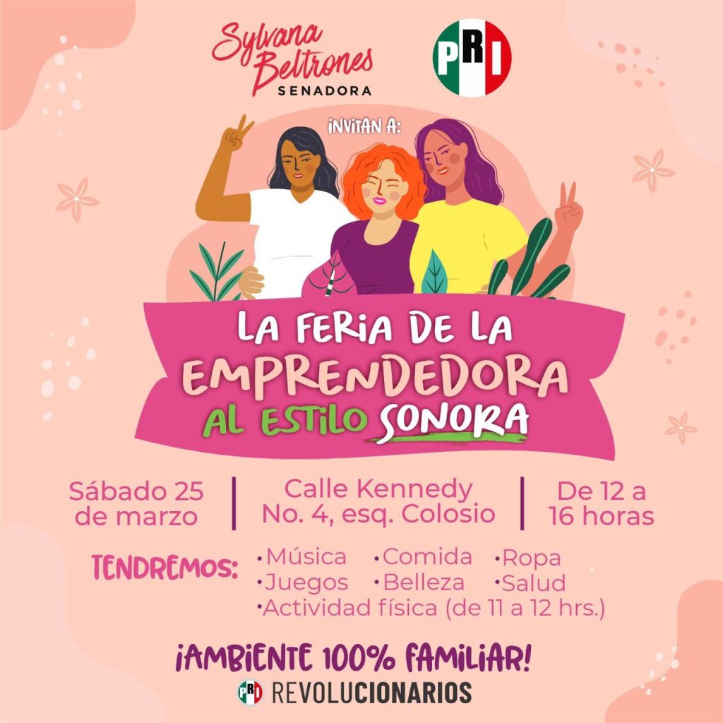Hermosillo.- El Partido Revolucionario Institucional (PRI) en Sonora, invita a la comunidad a asistir a la “Feria emprendedora al estilo Sonora”, un evento donde más de 60 emprendedores locales ofrecerán sus productos a la venta. La feria se llevará a cabo el sábado 25 de marzo de las 11:00 a.m. hasta las 4:00 p.m., frente al edificio del partido ubicado en la calle Kennedy y Colosio, colonia Casa Blanca.