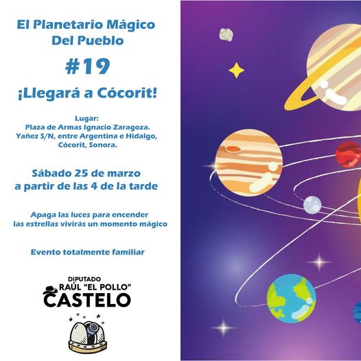 Este sábado llegará a Cócorit El Planetario Mágico Del Pueblo del diputado “El Pollo” Castelo  ❤️🤩🤠💫⭐️🪐🌏🌘🌚☄️✨🌏
