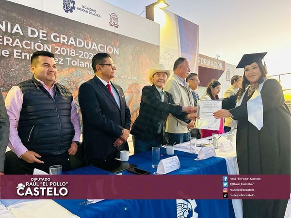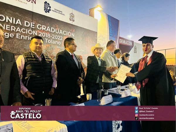El diputado local Raúl “El Pollo” Castelo Montaño fue invitado especial como Presidente del Patronato de Vinculación del Instituto Tecnológico Del Valle del Yaqui (ITVY), a la Ceremonia de Graduación generación 2018-2022 “Serge Enríquez Tolano”.