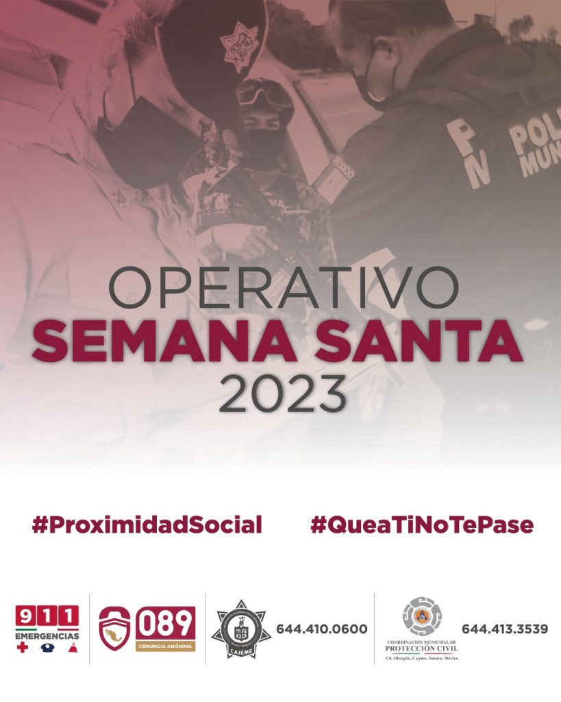 Para una Semana Santa 2023 con un saldo blanco, la Secretaría de Seguridad Pública Municipal alistó un operativo especial a través de estrategias operativas que favorezcan un ambiente seguro para las familias, paseantes y turistas que disfruten de los espacios de recreo de nuestro Municipio.