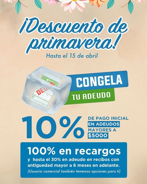 Últimos días de descuentos de primavera 🌻🌺🌷🌸en OOMAPAS de Cajeme💧y ponte al corriente ✅en tu recibo de agua.