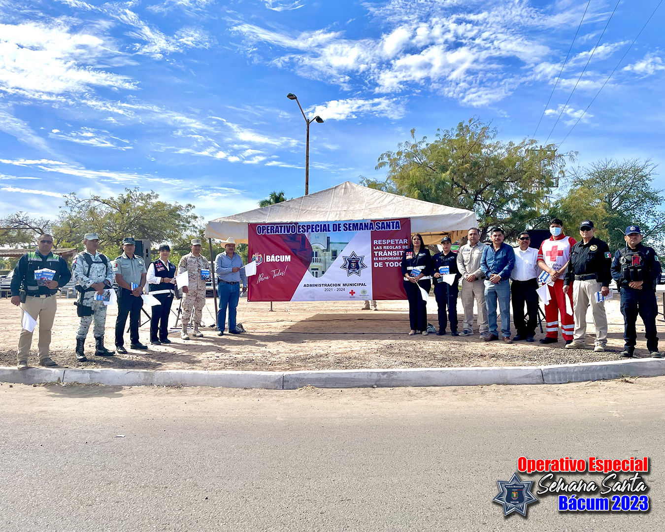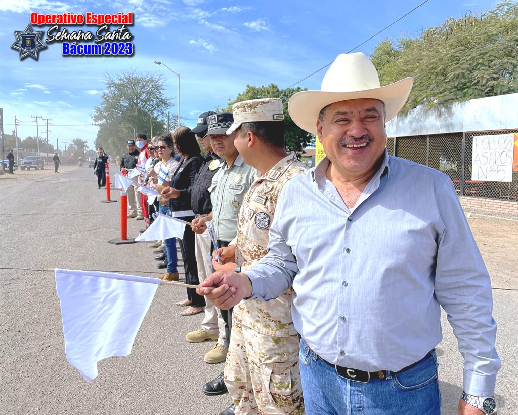 Acompañado de las autoridades en materia de Seguridad Pública de los tres órdenes de gobierno, de Cruz Roja, Bomberos y Protección Civil, este lunes el alcalde de Bácum, Serge Enríquez Tolano dio el banderazo de inicio del “Operativo Especial de Semana Santa 2023”.