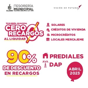 Este mes de abril aprovecha los descuentos que Tesorería Municipal tiene para ti. ¡Cero recargos al liquidar tus adeudos! Acude a los módulos de pago y ponte al día.