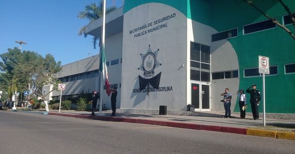 Para enaltecer el respeto a nuestro labaro patrio, las y los agentes de la Secretaría de Seguridad Pública Municipal, efectuaron el tradicional lunes cívico en el exterior del edificio de la corporación policial.